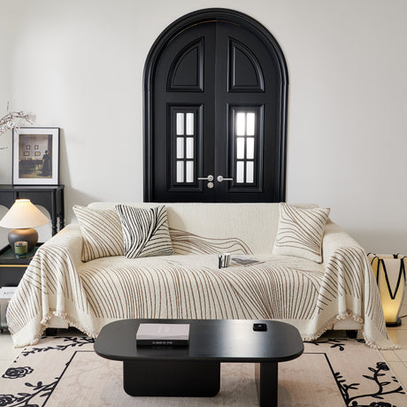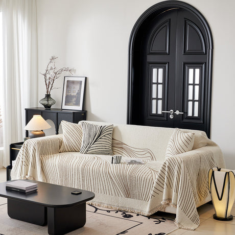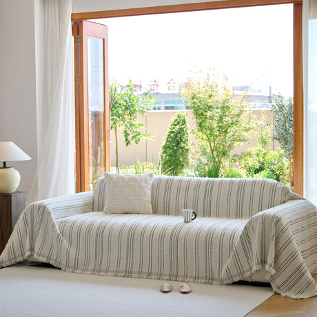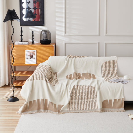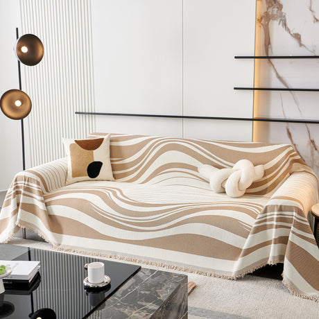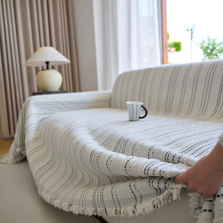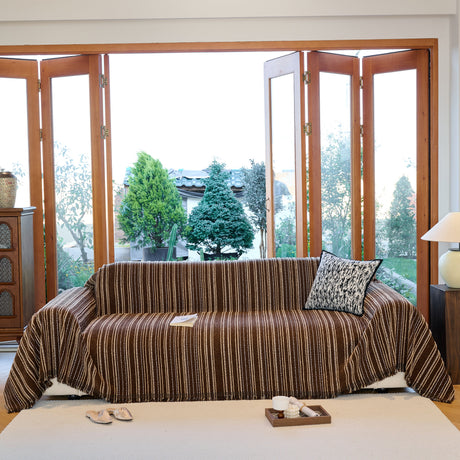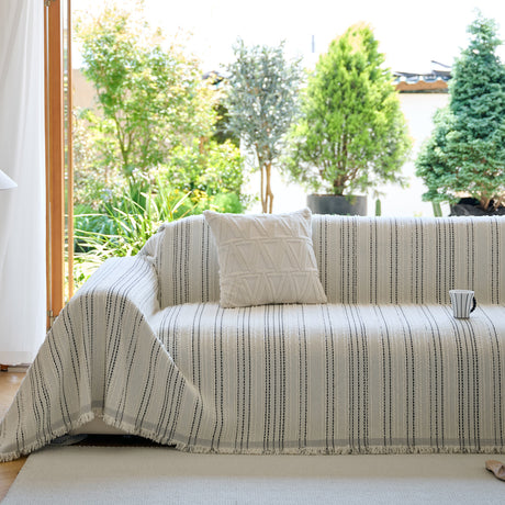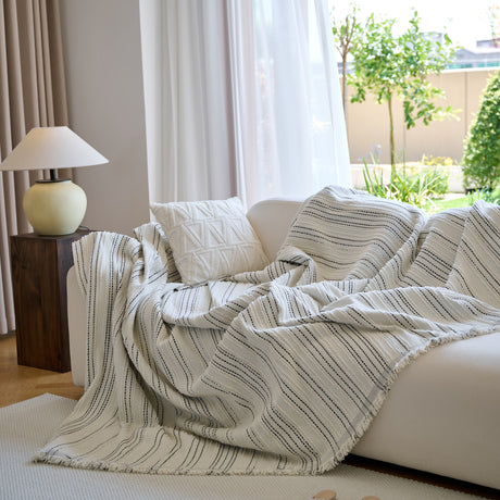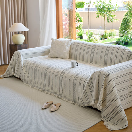 Textured Woven Modern Sofa Cover, Natural Blend Decorative Couch Throw Blanket