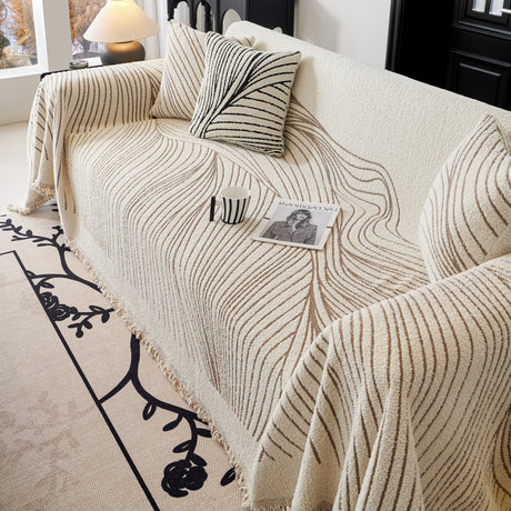 Chenille Sofa Cover Throw Blanket Woven Textured Decorative Furniture Slipcover
