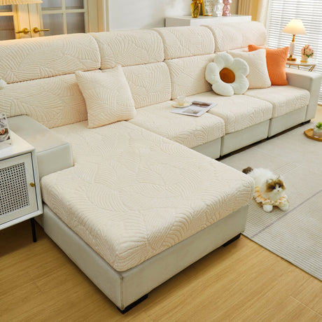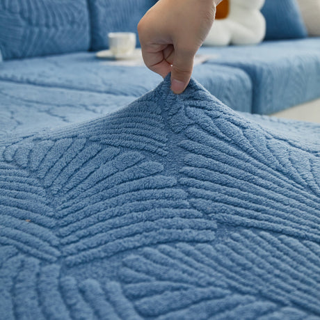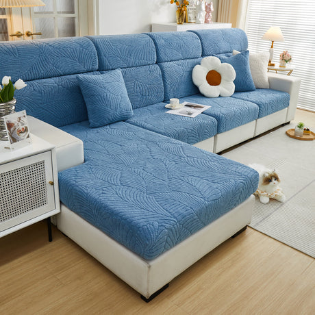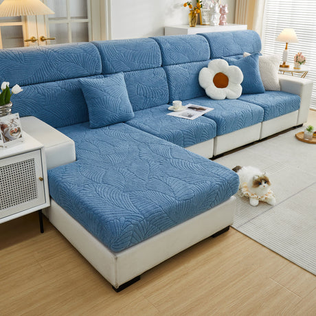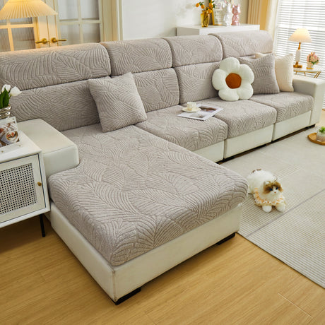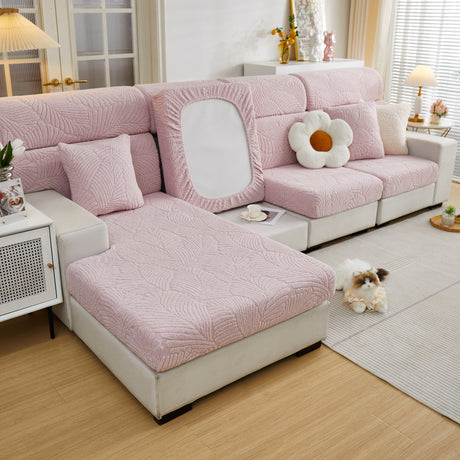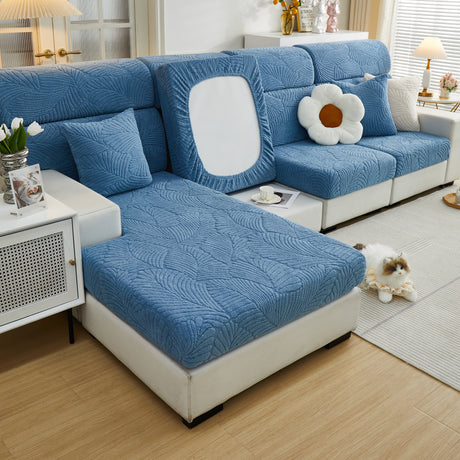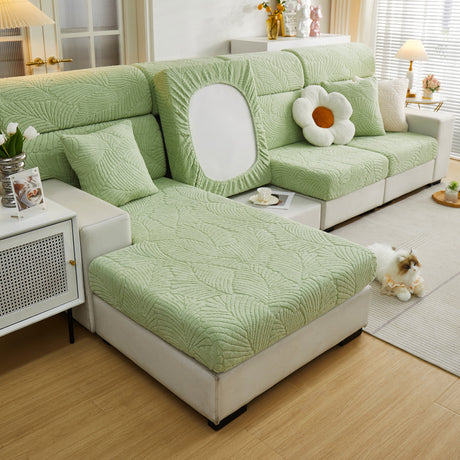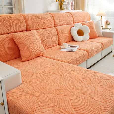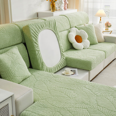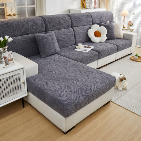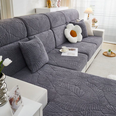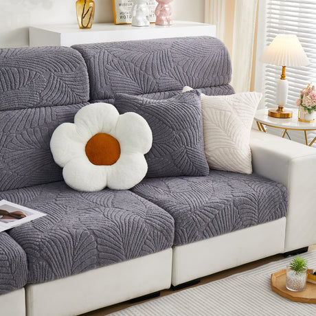 Cozy Plush Coral Fleece Sofa Cushion Slipcovers, Stretch Leaves Cushion Covers, Furniture Slipcovers