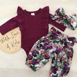 3Pcs Baby Girls Flying sleeves Bodysuit and Floral Lace-up Pants ,Headwear Set WIth Jumpsuit and Bow In Elegant Luxury Modern Print Deign For Baby Girls and Girls Kids