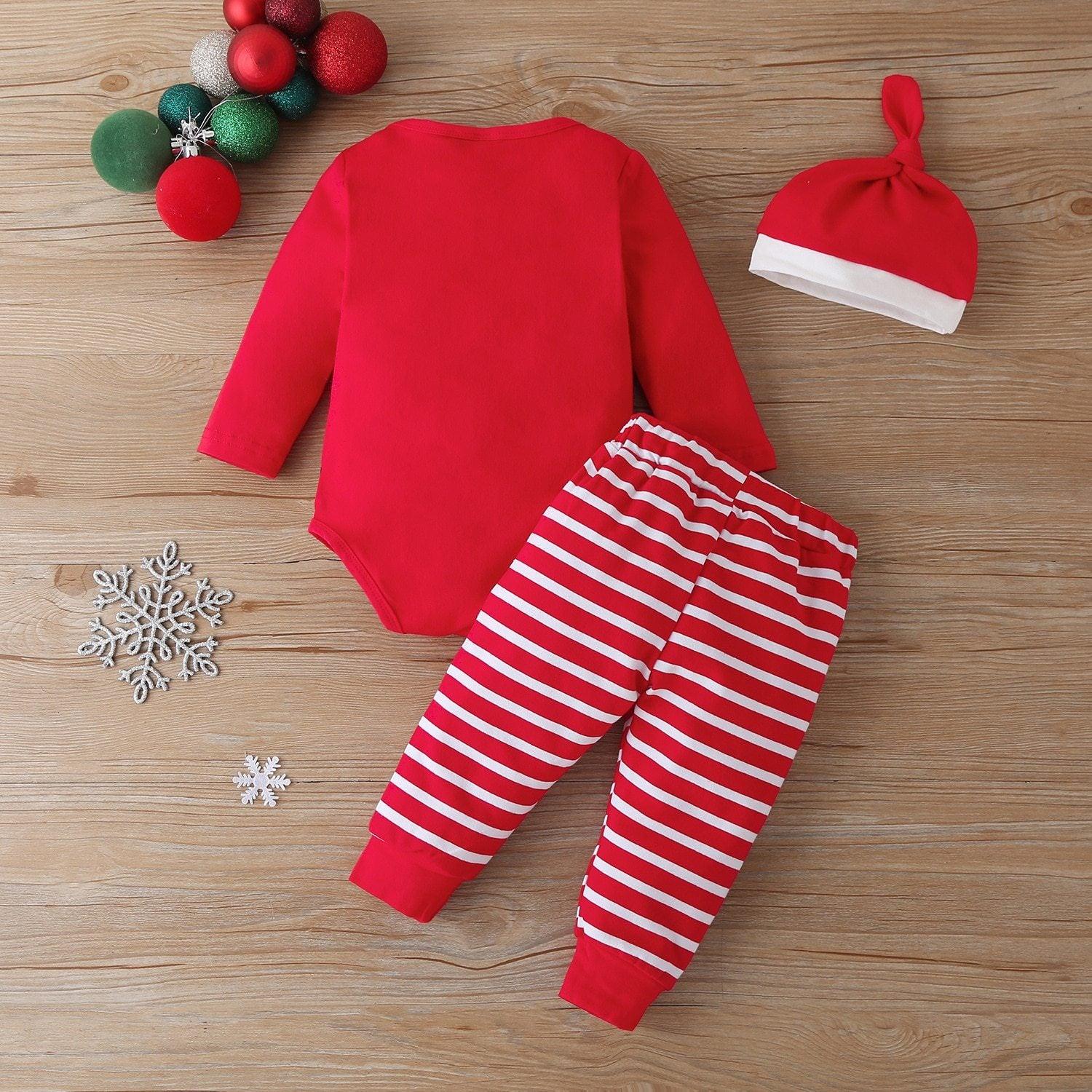 Christmas Baby Set Unisex 3PCS Cotton Bodysuits Pants Hat Full Sleeve Print Baby Clothes For Christmas For Girls And Girls