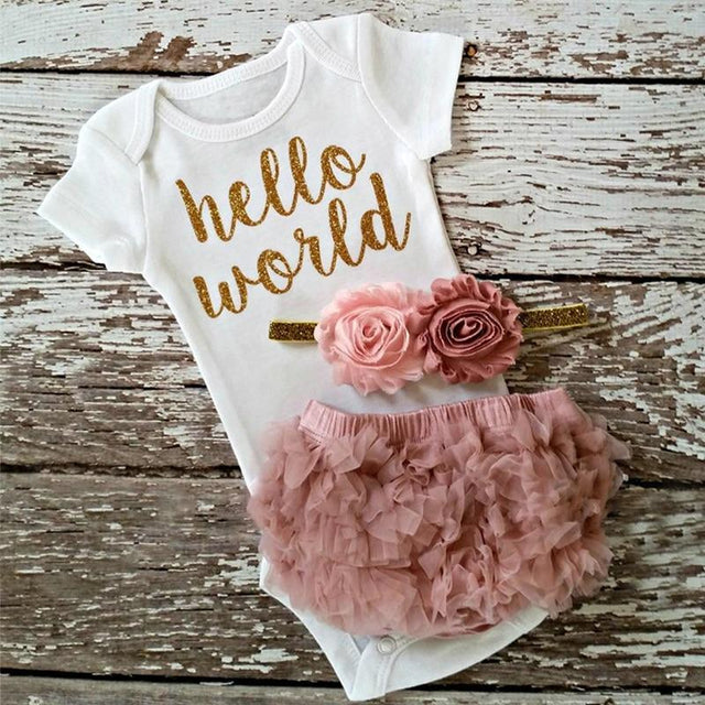 Modern New Baby Girls Outfits for 1st First Birthday Party Romper and Headband 3Pcs Suit For Girls