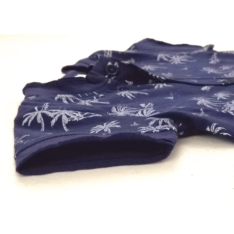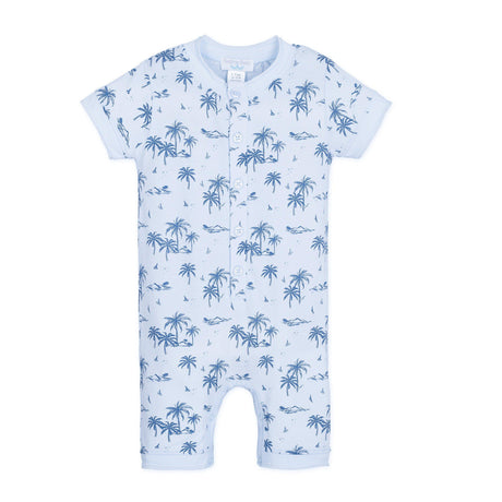 Henley Romper - Vintage Hawaii - Indigo on Baby Blue 100% Pima Cotton by Feather Baby