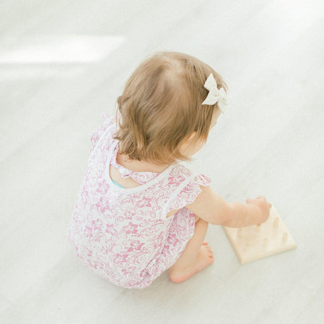 Tie Romper - Daffodil - Hot Pink on White 100% Pima Cotton by Feather Baby