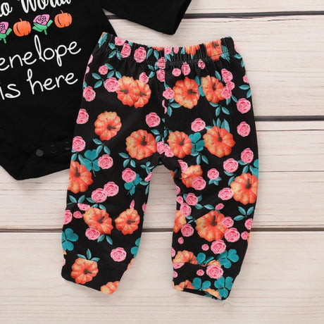 Halloween Clothing Newborn Infant Pumpkin Romper Floral Trousers Hat Headband 4pcs Set For Girls
