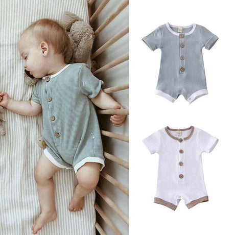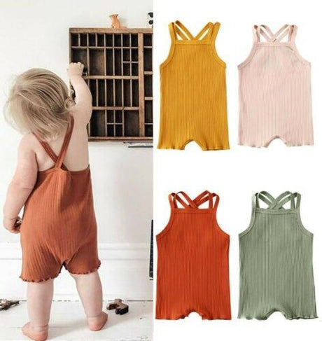 Infant Baby Boys Girls Clothes Ribbed Solid Romper Jumpsuit In Retro Deisgn For Kids