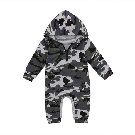 Infant Baby Boy Hooded Camouflage Military Design Romper Warm Spring Autumn Jumpsuit For Baby Kids