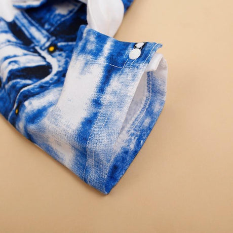Henley Romper - Vintage Hawaii - Indigo on Baby Blue 100% Pima Cotton by Feather Baby