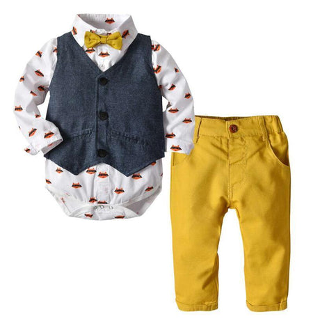 Modern Formal Baby Boys Gentlemen Sets Bow Tie Romper +Long Pants+ Hat Autumn Outfits For Boys Kids
