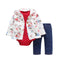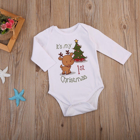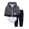 Modern Luxury Christmas Print Long Sleeve Striped Plaid Romper Pants Hat 3pcs For Baby Boys Girls
