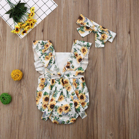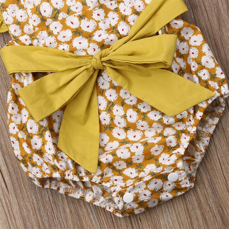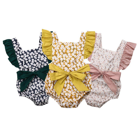 Modern Elegant Baby Girl Flower Romper Jumpsuit Playsuit Outfits Clothes For Girls With Bow