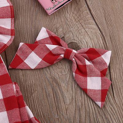 Modern New Newborn Kids Baby Girls Plaid Ruflles Romper Jumpsuit Clothes Outfit Set For Girls