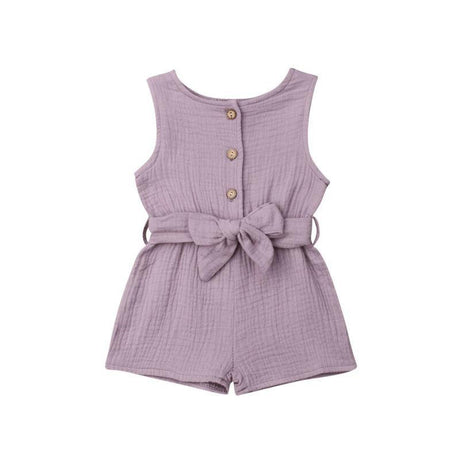 Newborn Baby Girl Kids Solid Romper Jumpsuit Playsuit Sleeveless Bow Belt Clothes Outfit For Summer