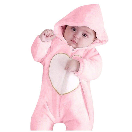 Modern Winter Baby Bear Animal Costume Hooded Romper Warm Flannel Plush Jumpsuit For Girls and Boys