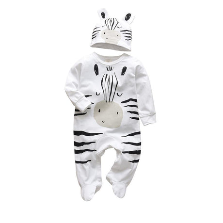 Newborn Baby Boys Romper Clothes Cotton Cute Cartoon Print Long Sleeve Jumpsuit Hat 2 Pcs