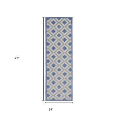6' Blue And Gray Indoor Outdoor Runner Rug