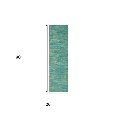 8' Blue And Gray Indoor Outdoor Runner Rug