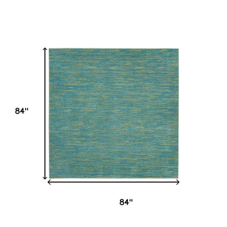 7' Blue And Green Square Indoor Outdoor Area Rug