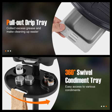 Barbecue Charcoal Grills with Wind Guard Seasoning Racks-Black