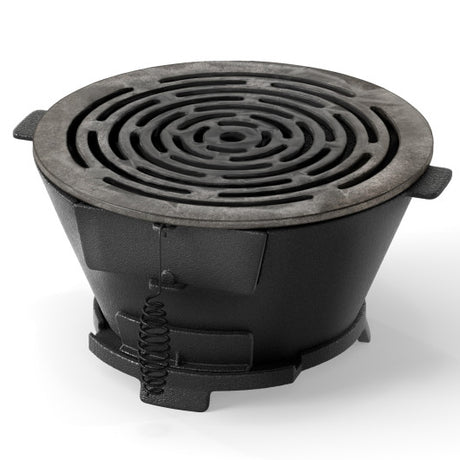 Round Hibachi Grill Outdoor Portable Charcoal Stove with 12 Inch Double-Sided Grate-Black
