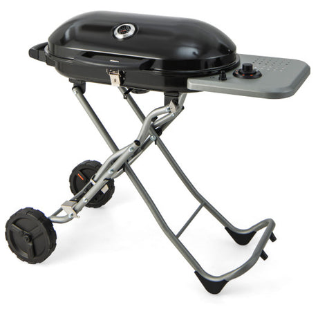 15000 BTU Portable Propane BBQ Grill with Wheels and Side Shelf-Black