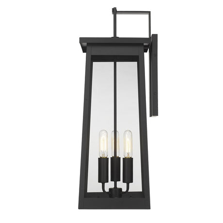 Three Light Matte Black Swing Arm Lantern Wall Light