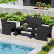 4 Pieces Patio Furniture Set with Tempered Glass Tabletop and Removable Cushion-Black