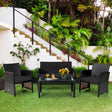 4 Pieces Patio Rattan Cushioned Furniture Set with Coffee Table-Black