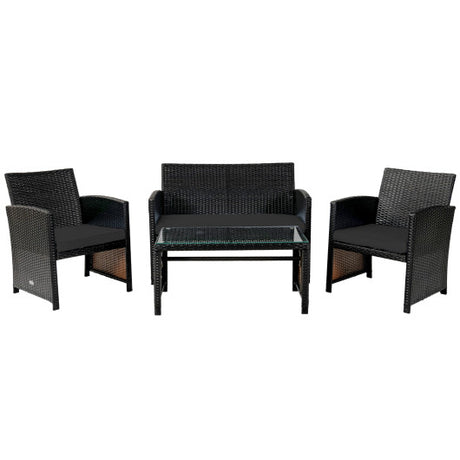 4 Pieces Patio Rattan Cushioned Furniture Set with Coffee Table-Black