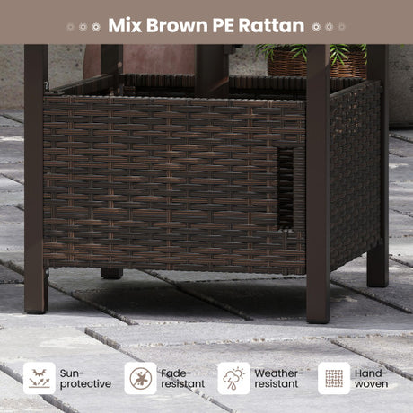 Outdoor Side Table with 1.93" Umbrella Hole All-Weather PE Wicker Patio Umbrella Table-Brown