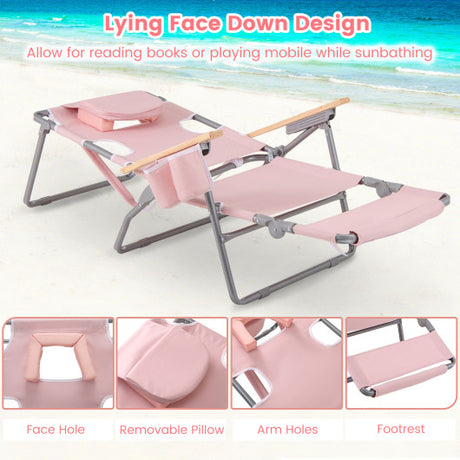 3-IN-1 Foldable Beach Chair with Footrest and Adjustable Backrest-Pink