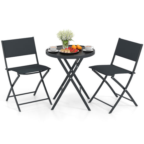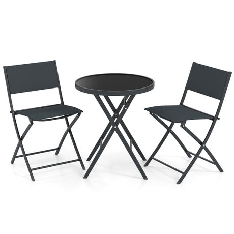 3 Piece Outdoor Folding Patio Bistro Set with Tempered Glass Coffee Table and 2 Patio Chairs