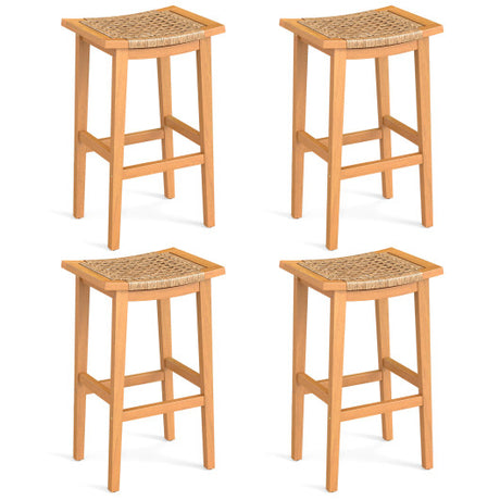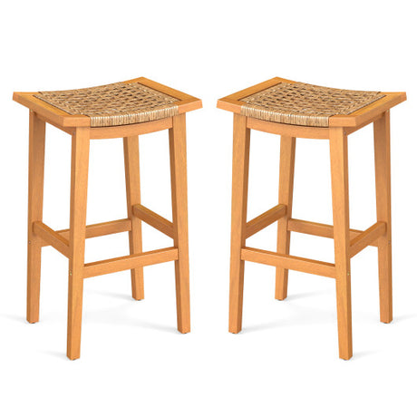 Outdoor Acacia Wood Bar Stools Set of 2 with PE Rattan Seats and Backrests