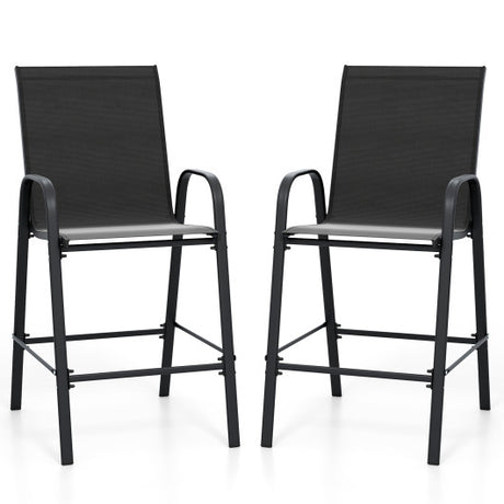 Outdoor Bar Stools Set of 2 29 Inch Fabric Bar Height Stools with Armrests-Black