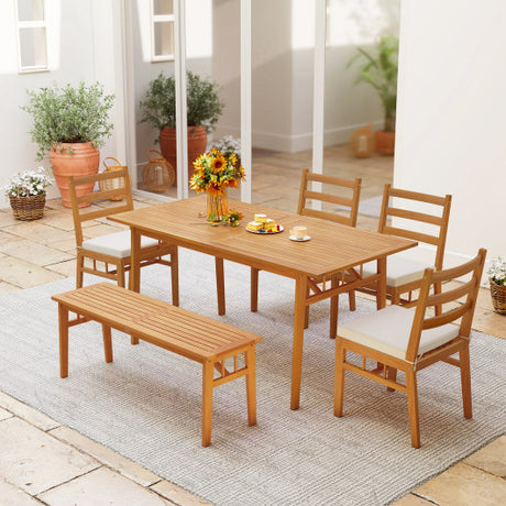 Acacia Wood Outdoor Bench 48 Inch Long Patio Dining Bench-1 Piece