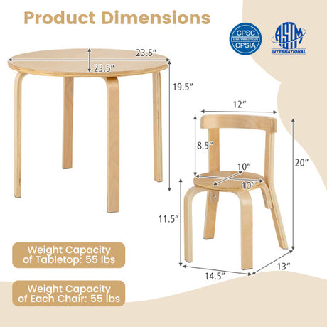 5-Piece Kids Toddler Wooden Curved Back Activity Table and Chair Set with Toy Bricks