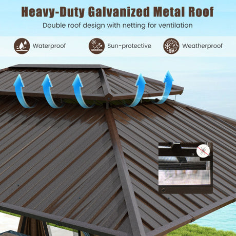 - Sold out53% offCostway 10 x 12 Feet Hardtop Gazebo with Netting and Curtain and Double-Roof Galvanized Metal Top Sale price $1,025.42 Regular price $2,172.00Unit price /Unavailable1 color available