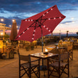 9 Feet Solar LED Lighted Patio Market Umbrella Tilt Adjustment Crank Lift-Dark Red