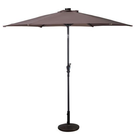 9FT Patio Solar Umbrella LED Patio Market Steel Tilt W/ Crank Outdoor New-Tan