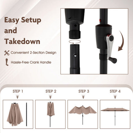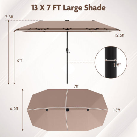 13 FT Large Patio Umbrella Outdoor Double-Sided Table Market Umbrella with Crank Handle-Coffee