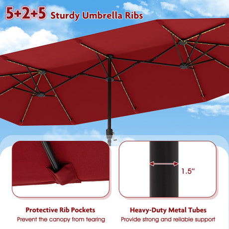 13 FT Large Patio Umbrella with LED Solar Lights and Crank Handle-Red