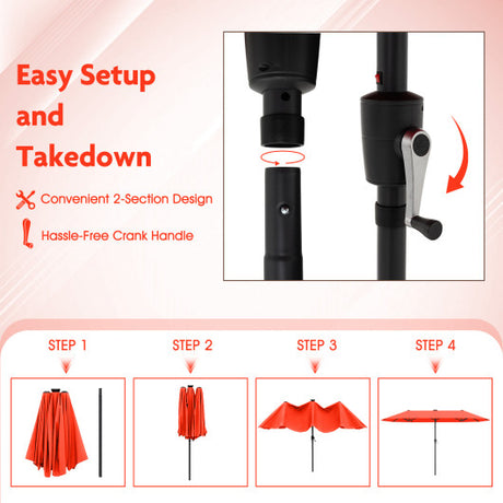 13 Feet Double-Sided Patio Twin Table Umbrella with Crank Handle-Orange