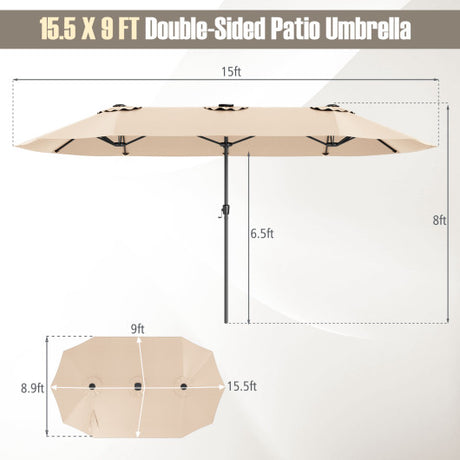 15.5 FT Extra-Large Patio Umbrella with LED Solar Lights and Crank Handle-Beige