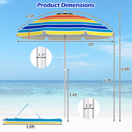 6.5 Feet Beach Umbrella with Carry Bag without Weight Base-Multicolor