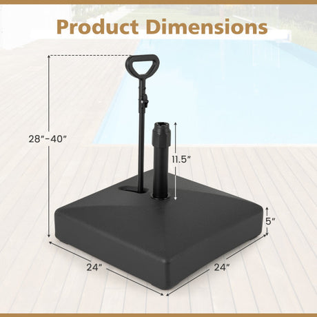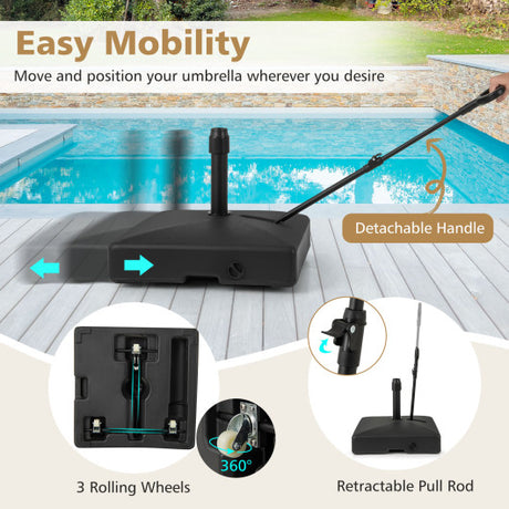 Mobile Patio Umbrella Base Water Sand Fillable Market Table Umbrella Stand with 3 Wheels-Black