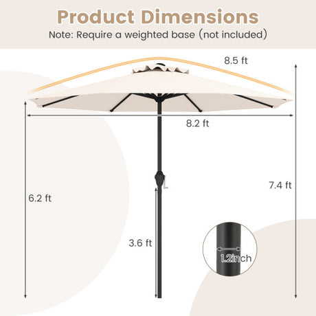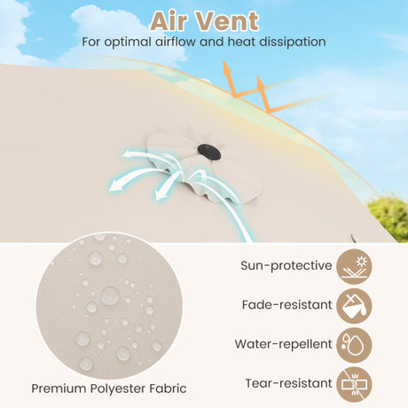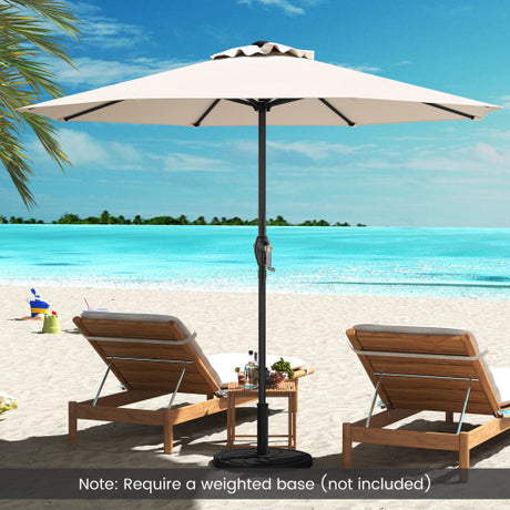 Outdoor Heavy Duty Market Umbrella with Crank Handle and 8 Sturdy Ribs-Beige
