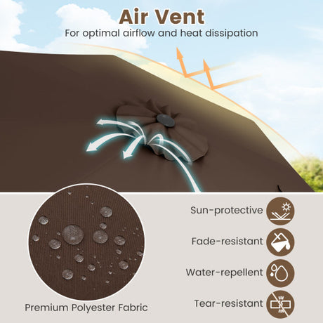 Outdoor Heavy Duty Market Umbrella with Crank Handle and 8 Sturdy Ribs-Brown