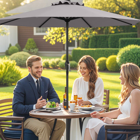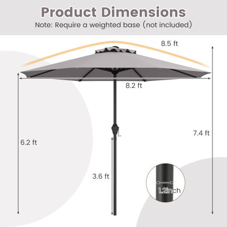 Outdoor Heavy Duty Market Umbrella with Crank Handle and 8 Sturdy Ribs-Gray