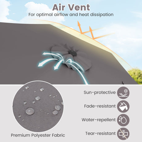 10 Feet Outdoor Patio Umbrella with Bright Solar LED Lights-Gray