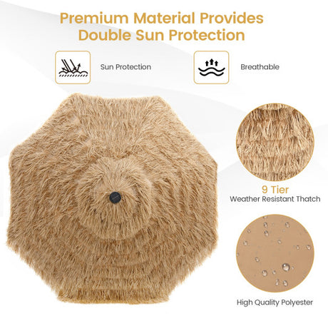 9 Feet Thatched Tiki Umbrella with 8 Ribs